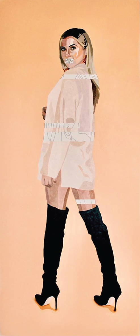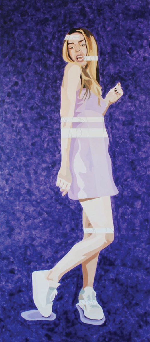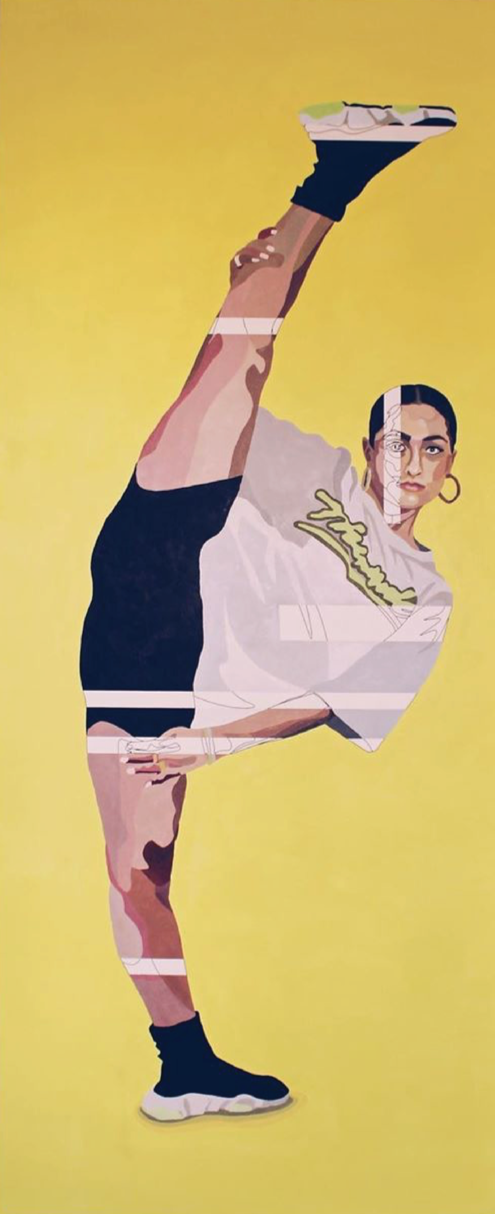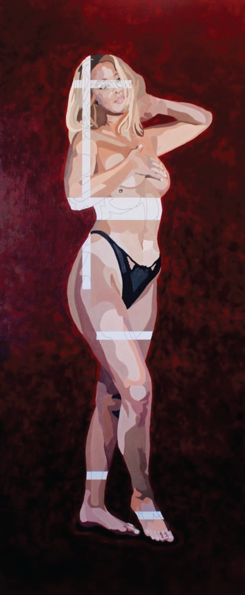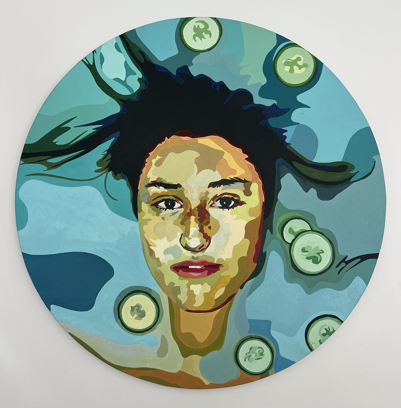 In 2024, Mackenzie began her Sirens series, a collection of oil paintings exploring the distortion of the human form through water. From a distance, the paintings appear fluid, drawing viewers in, only for them to realize up close that the imagery is blocks of color.