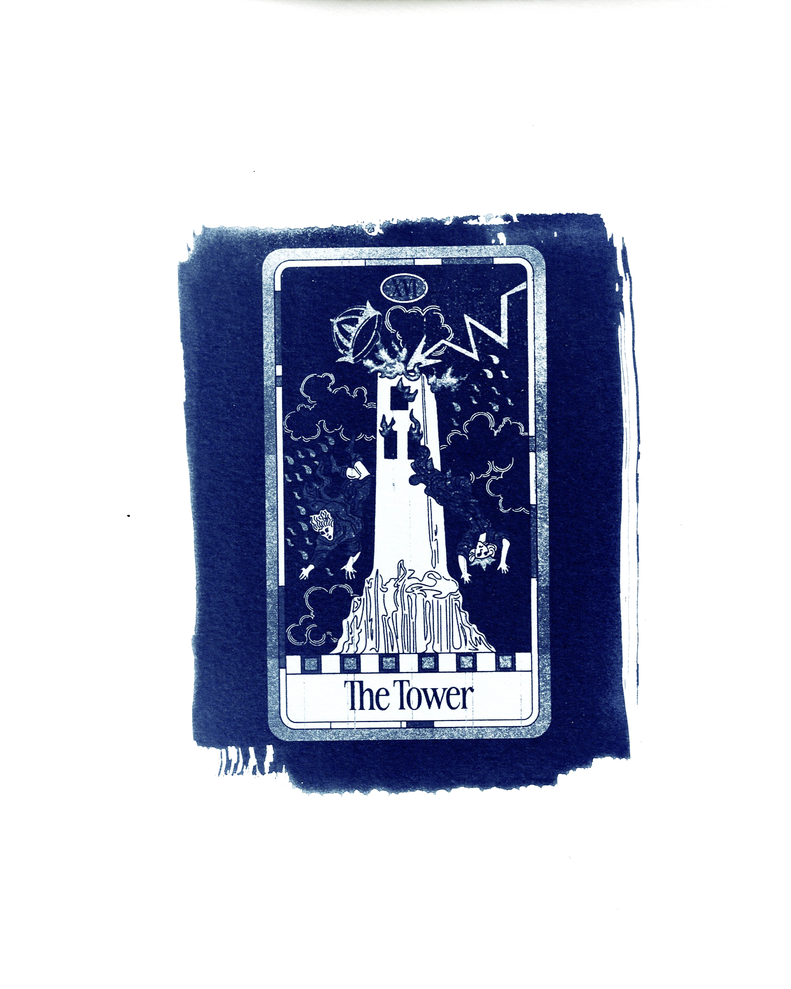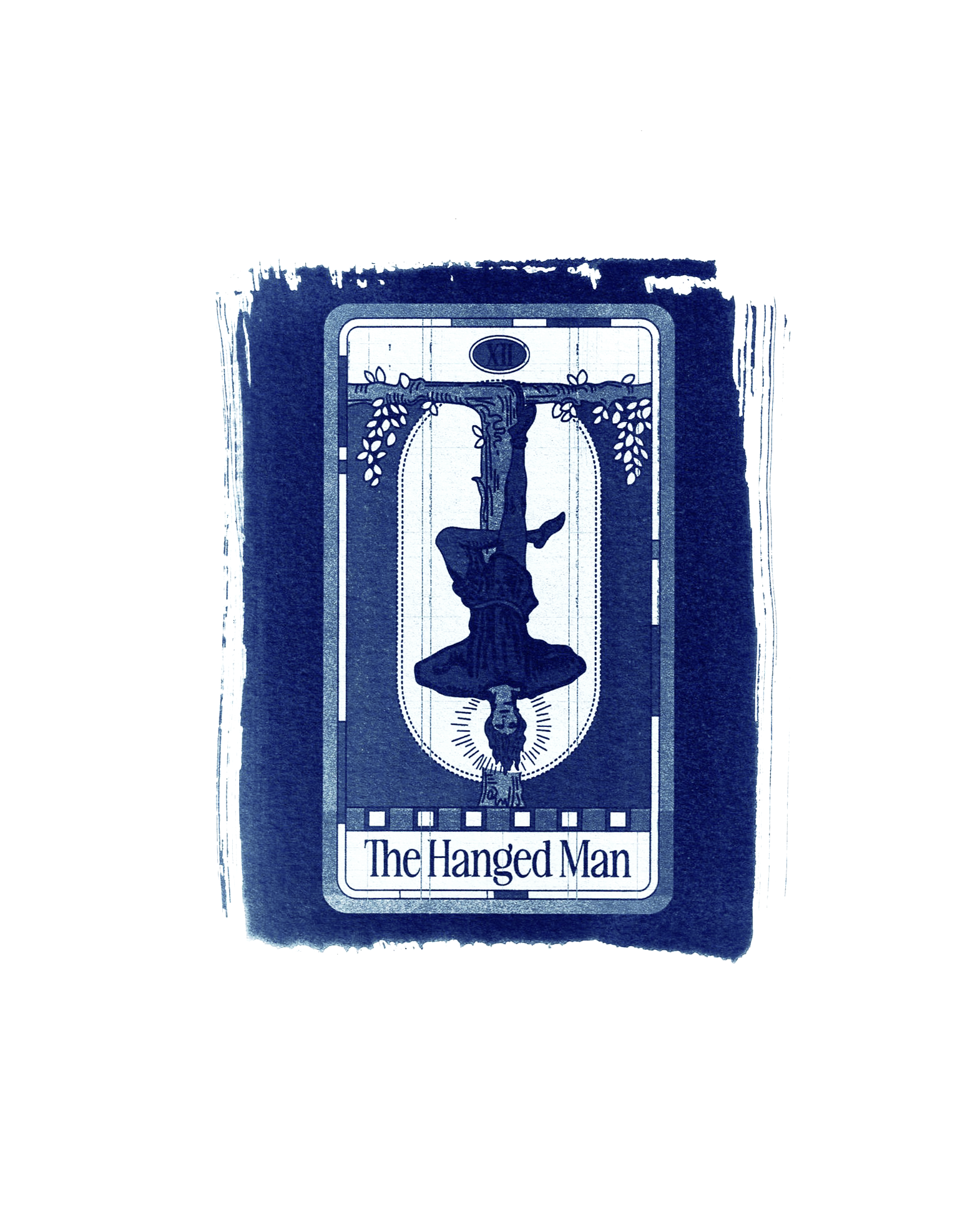 These pieces are created using a cyanotype printmaking method. The originals are 8x10 and based off my illustrations of the major arcana tarot cards.